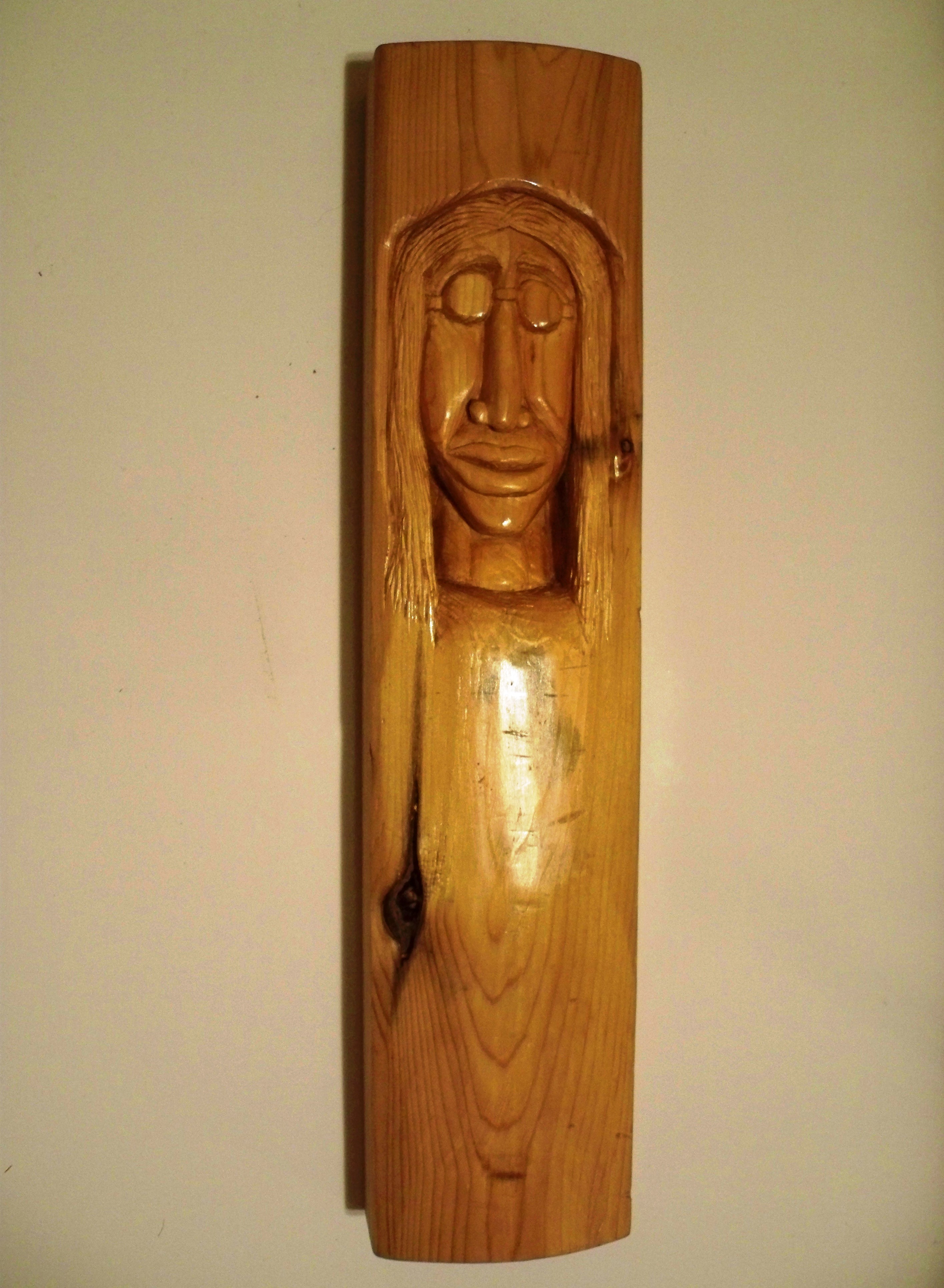 This beautiful one of a kind piece was hand carved out of white cedar and is ready to be hung or set out on display. Inspired by the music of the 70's. Martin has created this wonderful piece for you to enjoy. |