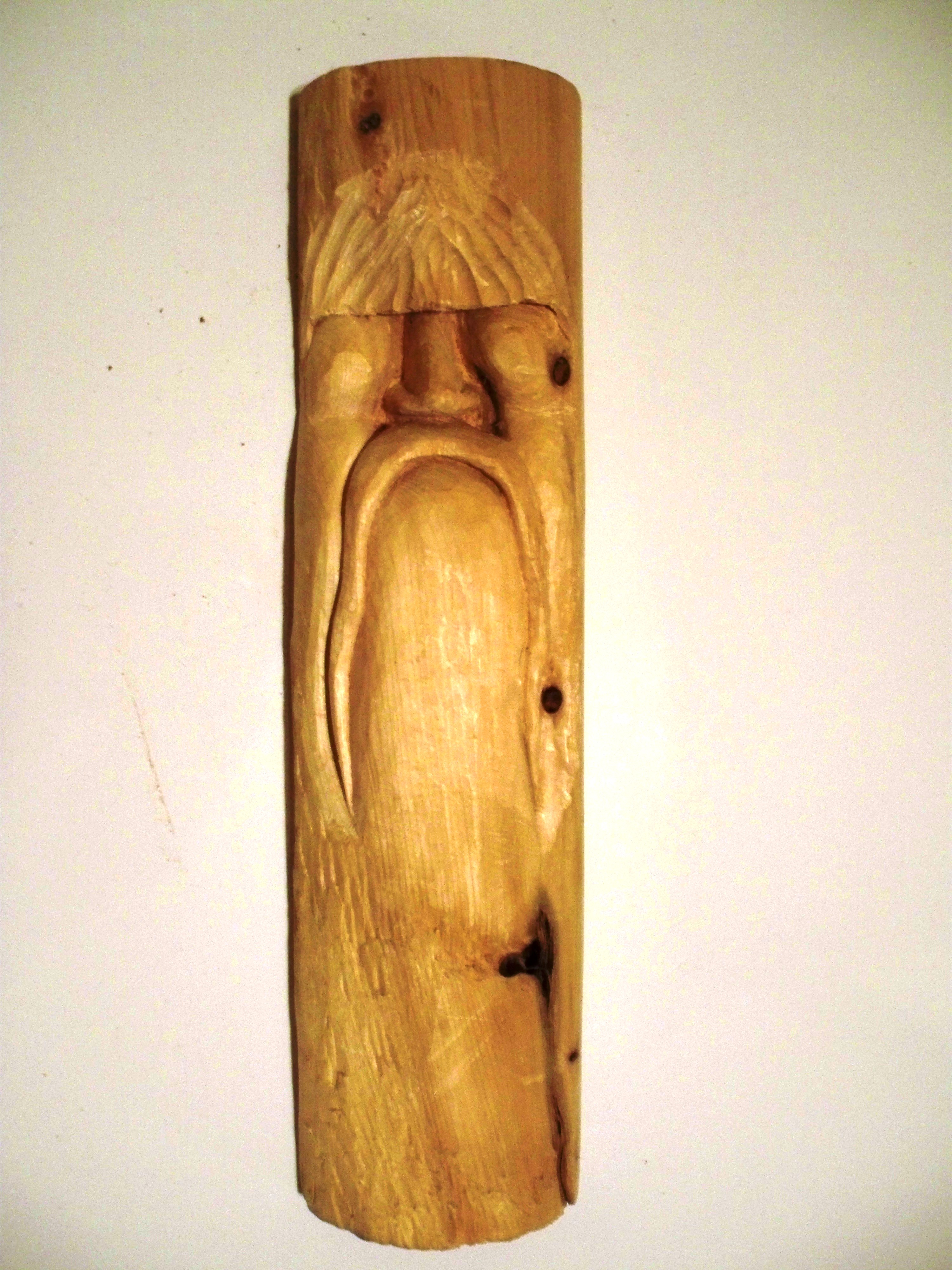 This beautiful one of a kind piece was hand carved out of white cedar and is ready to be hung or set out on display. Inspired by thoughts of nature. Martin has created this wonderful piece for you to enjoy. |