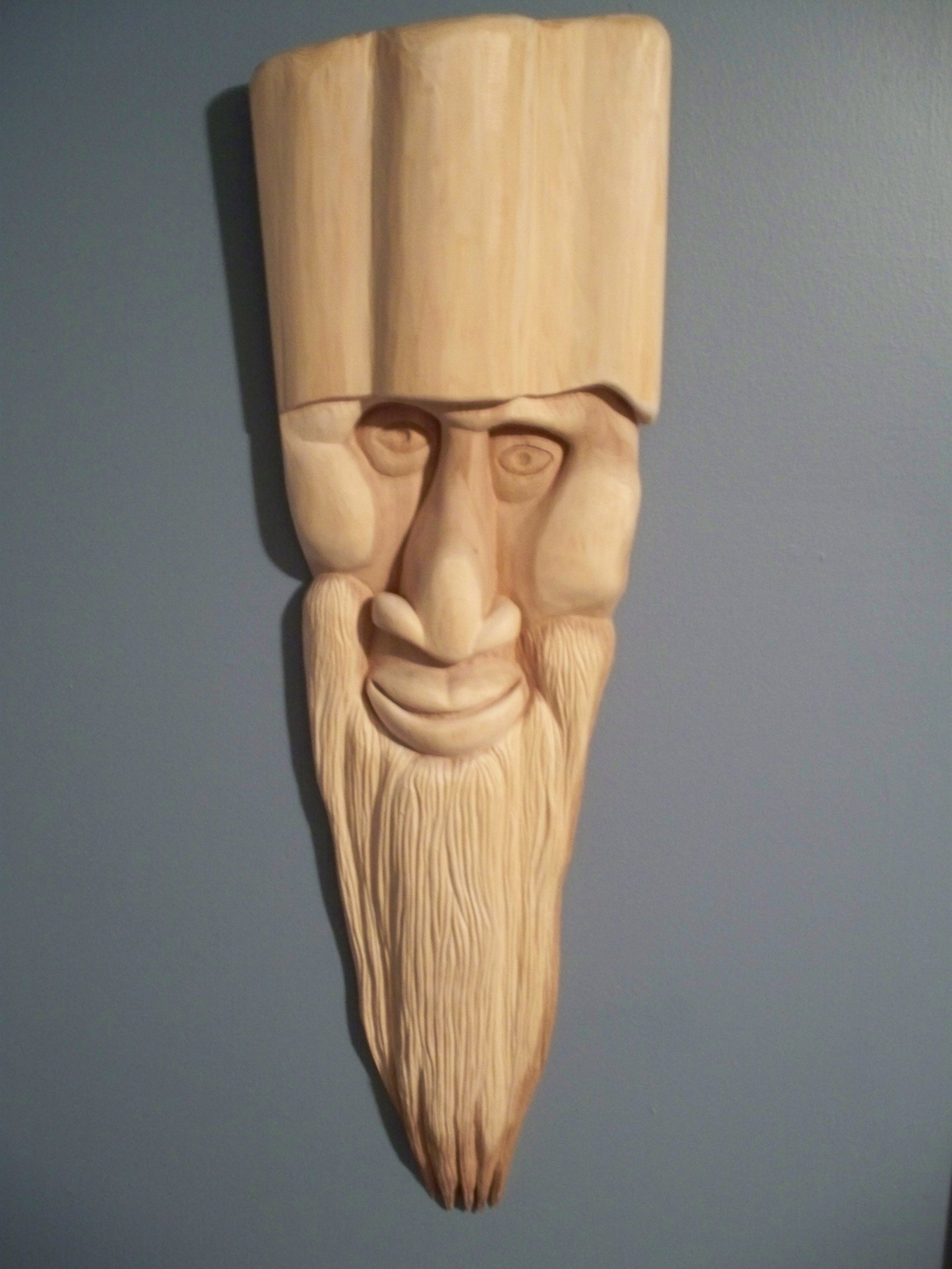This beautiful one of a kind piece was hand carved out of a white cedar half log and is ready to be hung or set out on display. Inspired by the cold blasts of wind and water along the shores of Lake Michigan. Martin has created this wonderful piece for you to enjoy. |